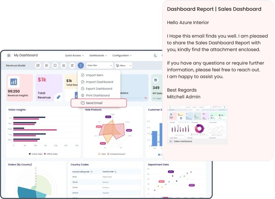Send Email is a unique feature that makes it easy for users to share their dashboards with Pre-specified users via email. This feature allows users to send dashboard snapshots PDFs as email to selected recipients.