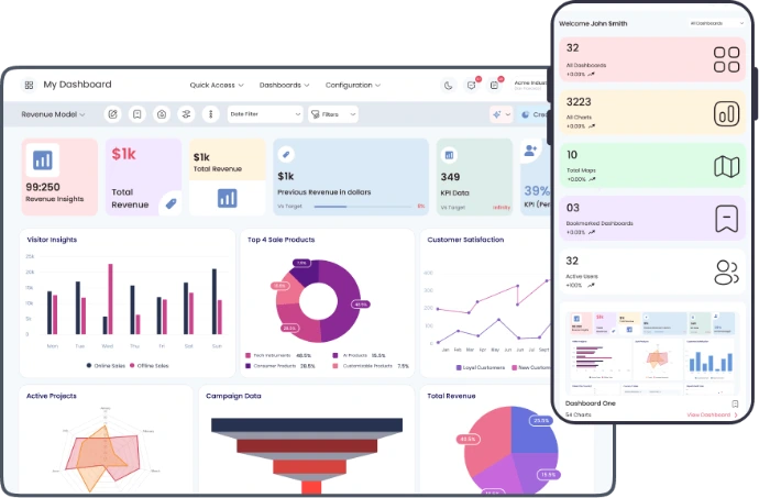 Dashboards adapt smoothly across desktop, tablet, and mobile devices.